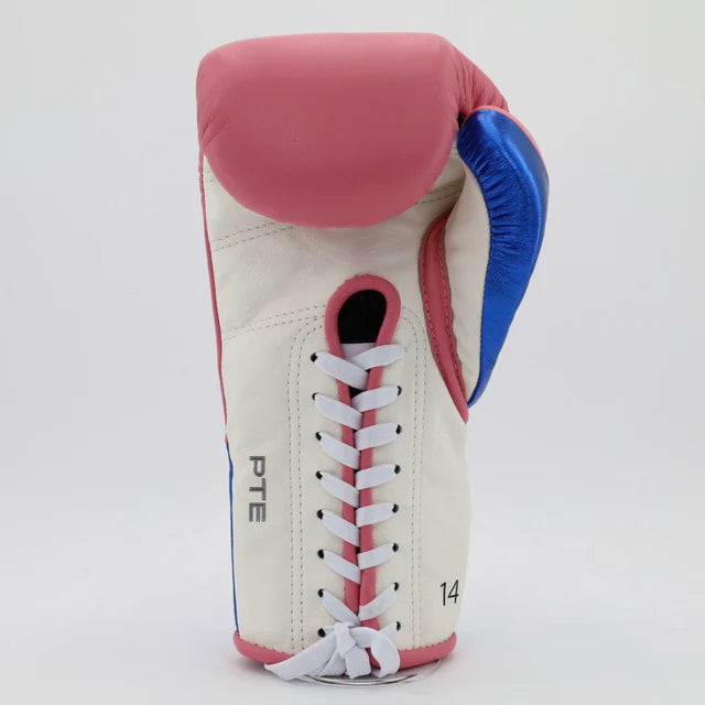 1v1 PTE Lace Up Training Gloves - Pink / Metallic Blue / White