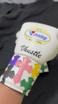 White Handmade Chrome Heart Boxing Gloves | Limited Edition | Premium Quality | Cowhide Leather | Personalise your Logo or Name