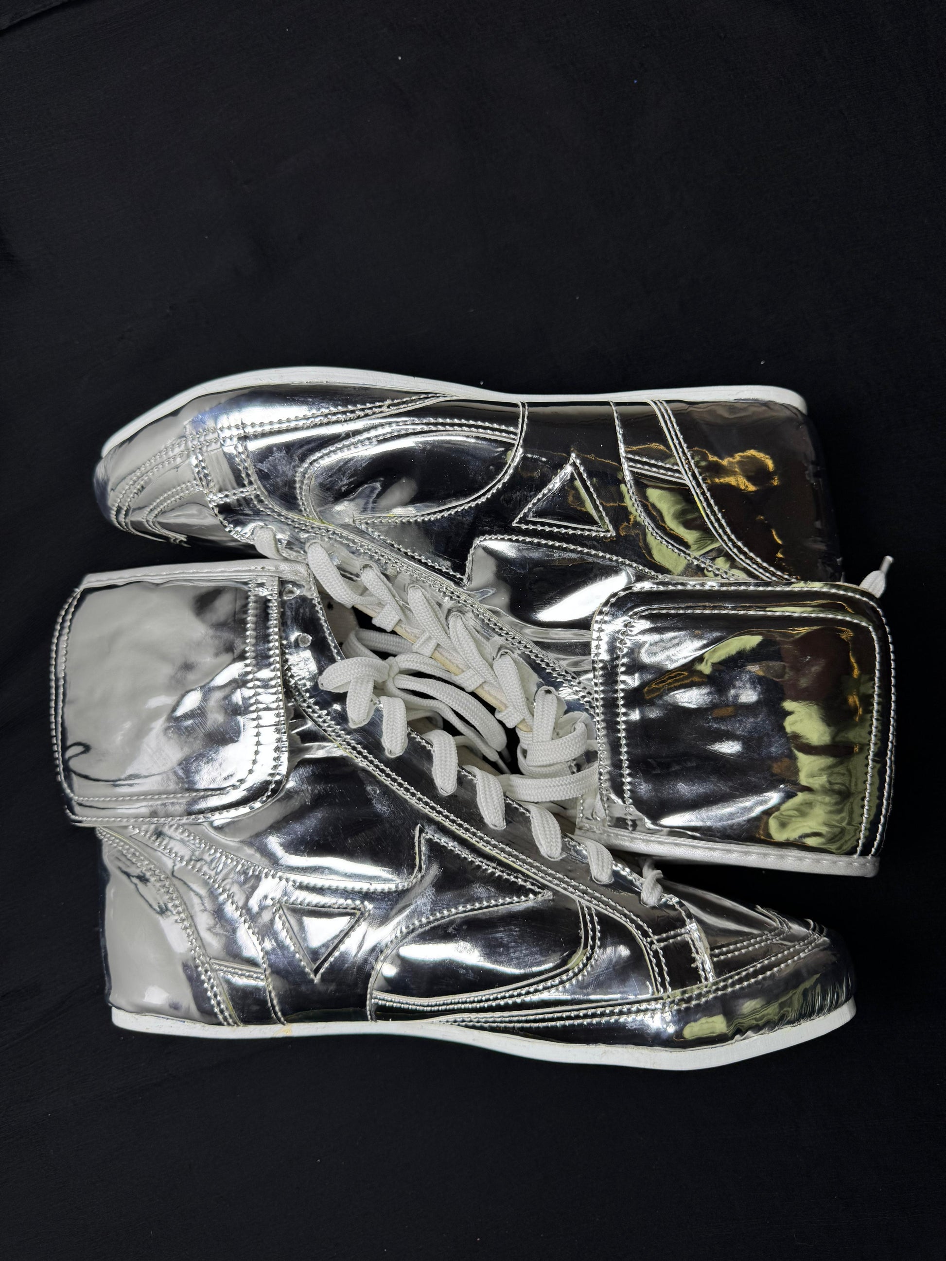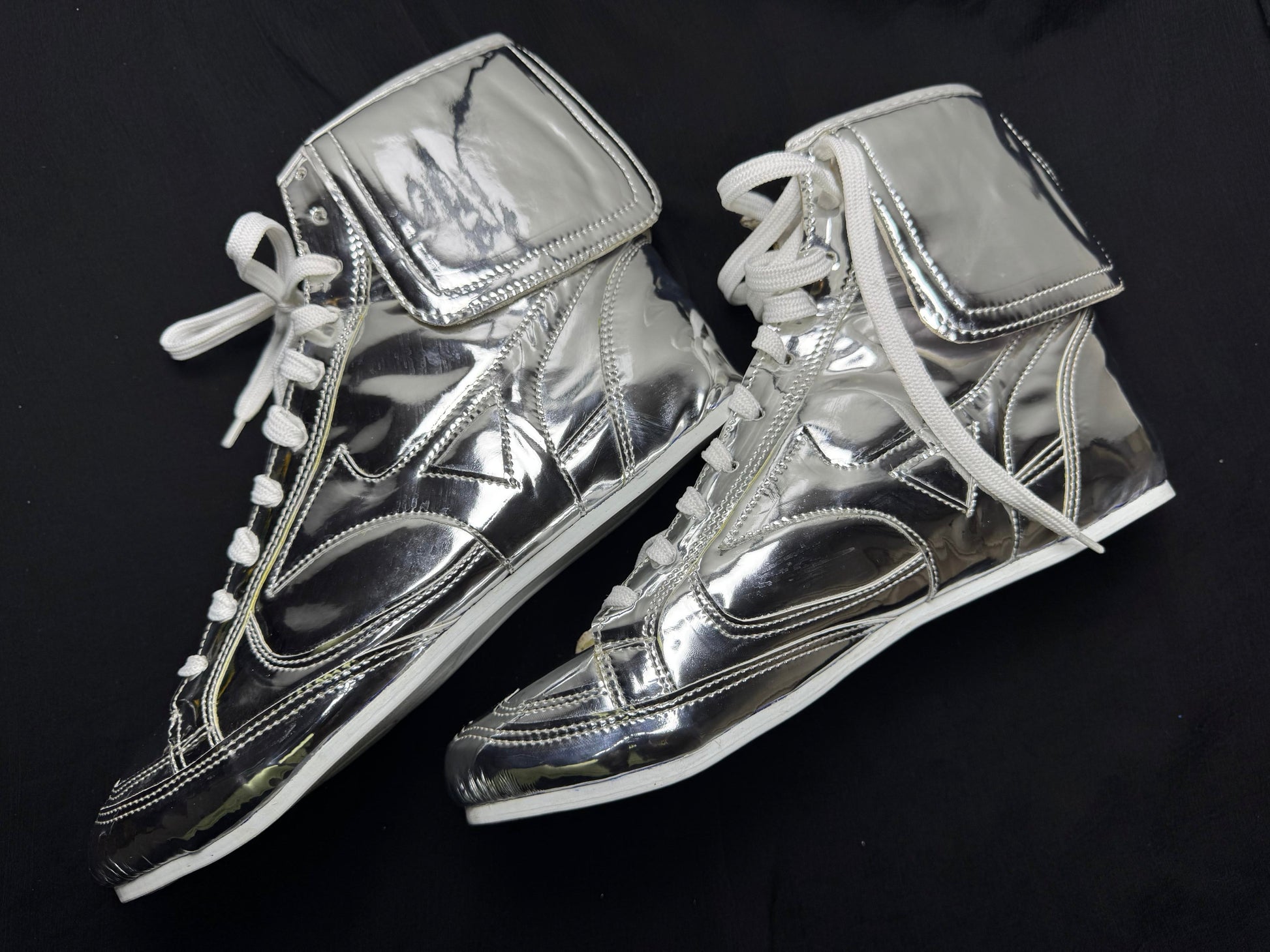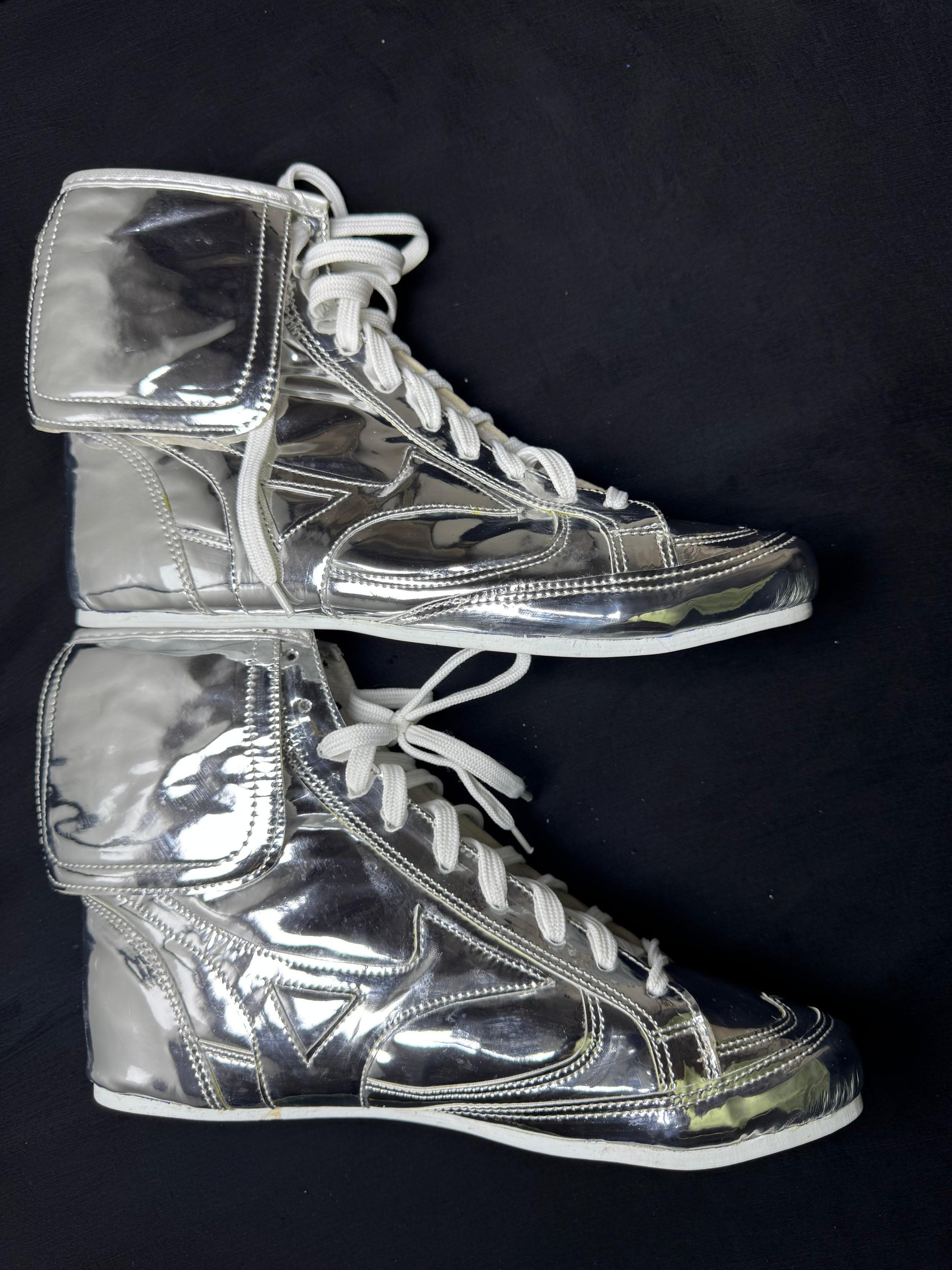 Custom Handmade Metallic Silver Boxing Shoes Lightweight Limited Edition
