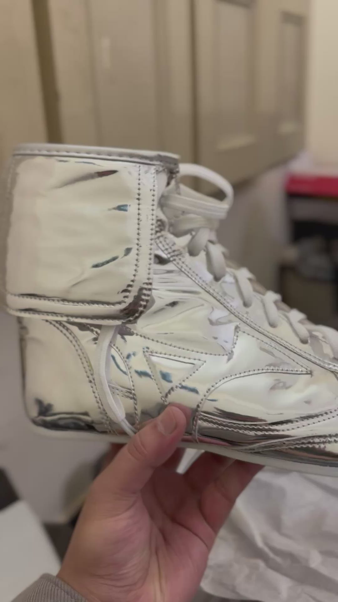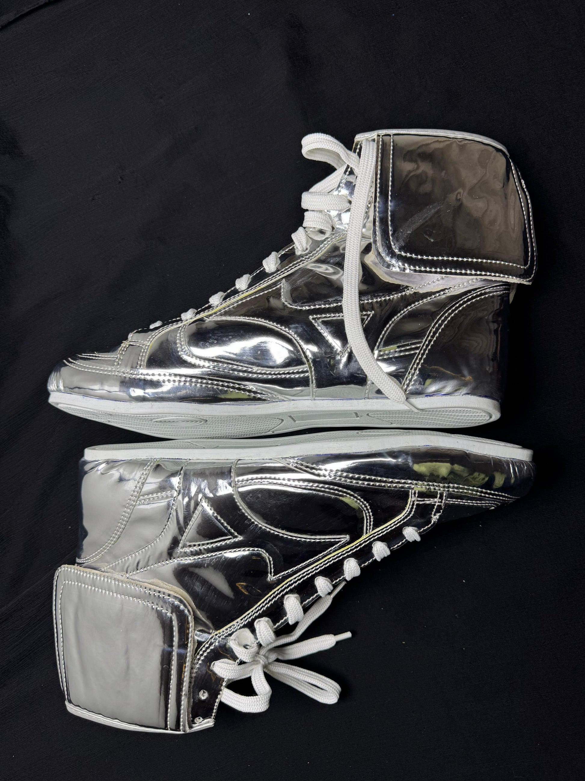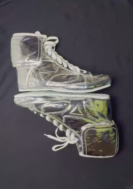 Custom Handmade Metallic Silver Boxing Shoes Lightweight Limited Edition