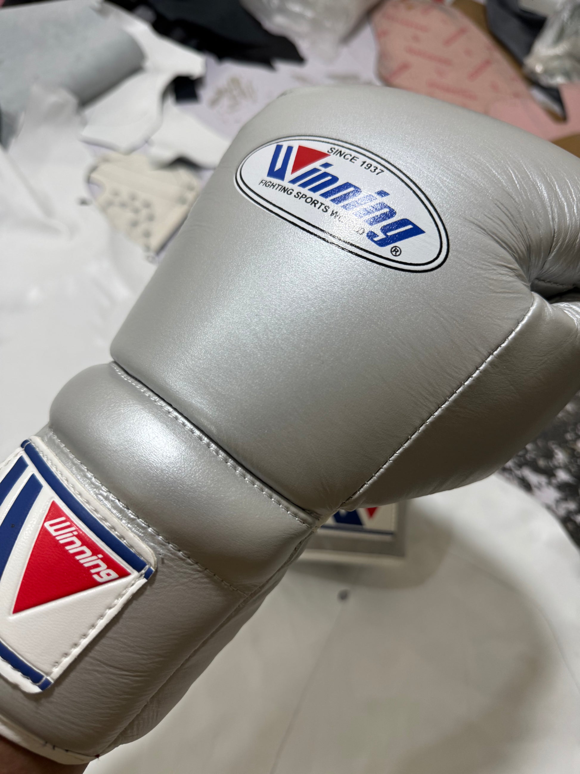 Custom Handmade Metallic Silver Pro Elite Boxing Gloves | Winnings | Personalise your name | 100% Pure Leather | Best Choice for Fighters