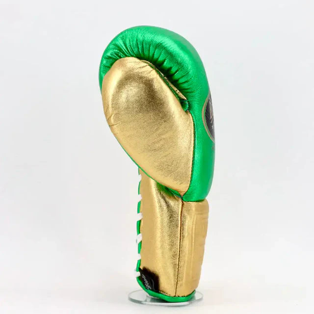No Boxing No Life Pro Fight Gloves - Metallic Green / Metallic Gold