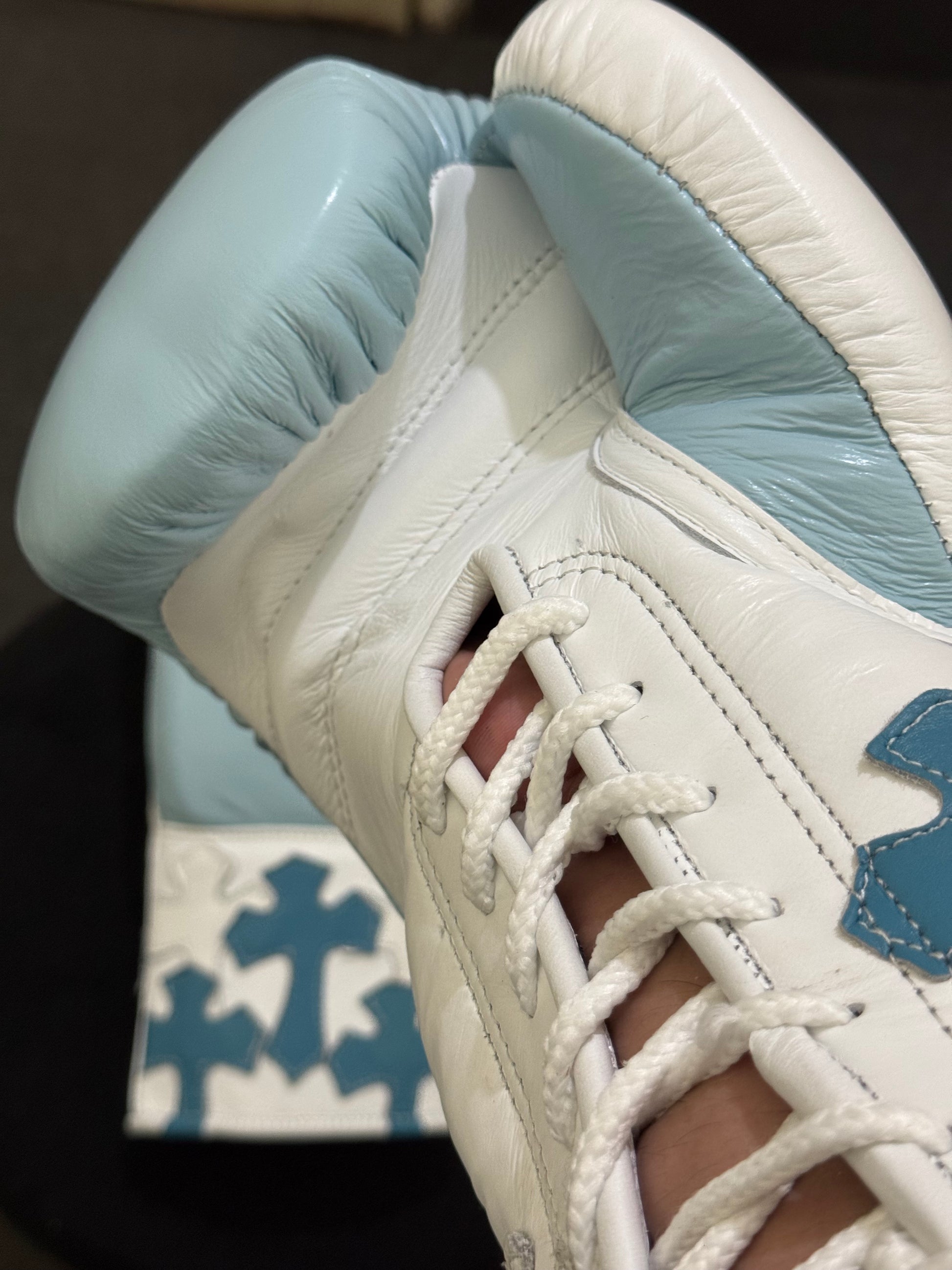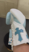Sky Blue & White - Handmade Chrome Heart Boxing Gloves | Limited Edition | Premium Quality | Cowhide Leather | Personalise your Logo or Name