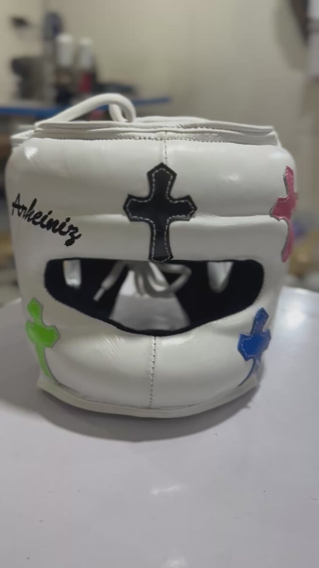 Introducing the Pure White Chrome Hearts Headgear, meticulously crafted from 100% cowhide leather. This headgear is designed for athletes who demand premium quality and durability during training and competition.